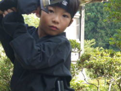 Very cute & charming three kids came to us together with their father and mother. Upon arrival, they started putting on ninja costume. Their mind was getting to ninja. They went to the 3rd floor where ninja training room was located. The 1st training started with greeting and how to receive sword. After those training, blowgun training was conducted. And then they went to outside to the garden, and training of sword and ninja star (shuriken) was performed. Returning back to the ninja training room, the last training was carried out. They were “underfloor penetration training” and castle wall walking training”. It was so hot and muggy (humid) with temperature of 36 deg c, but all of them completed hard & severe training without any issue / problem. Good job done!!!